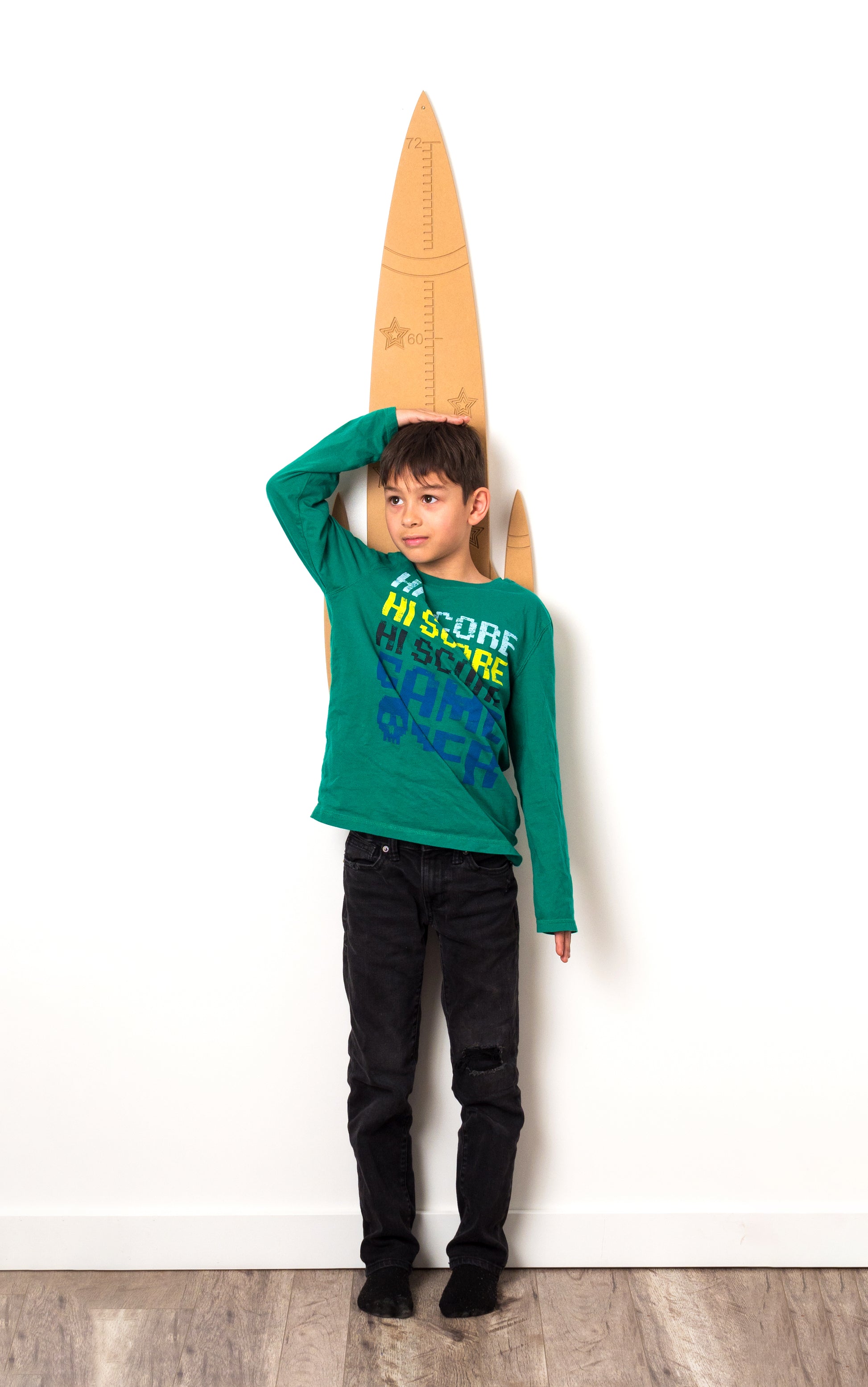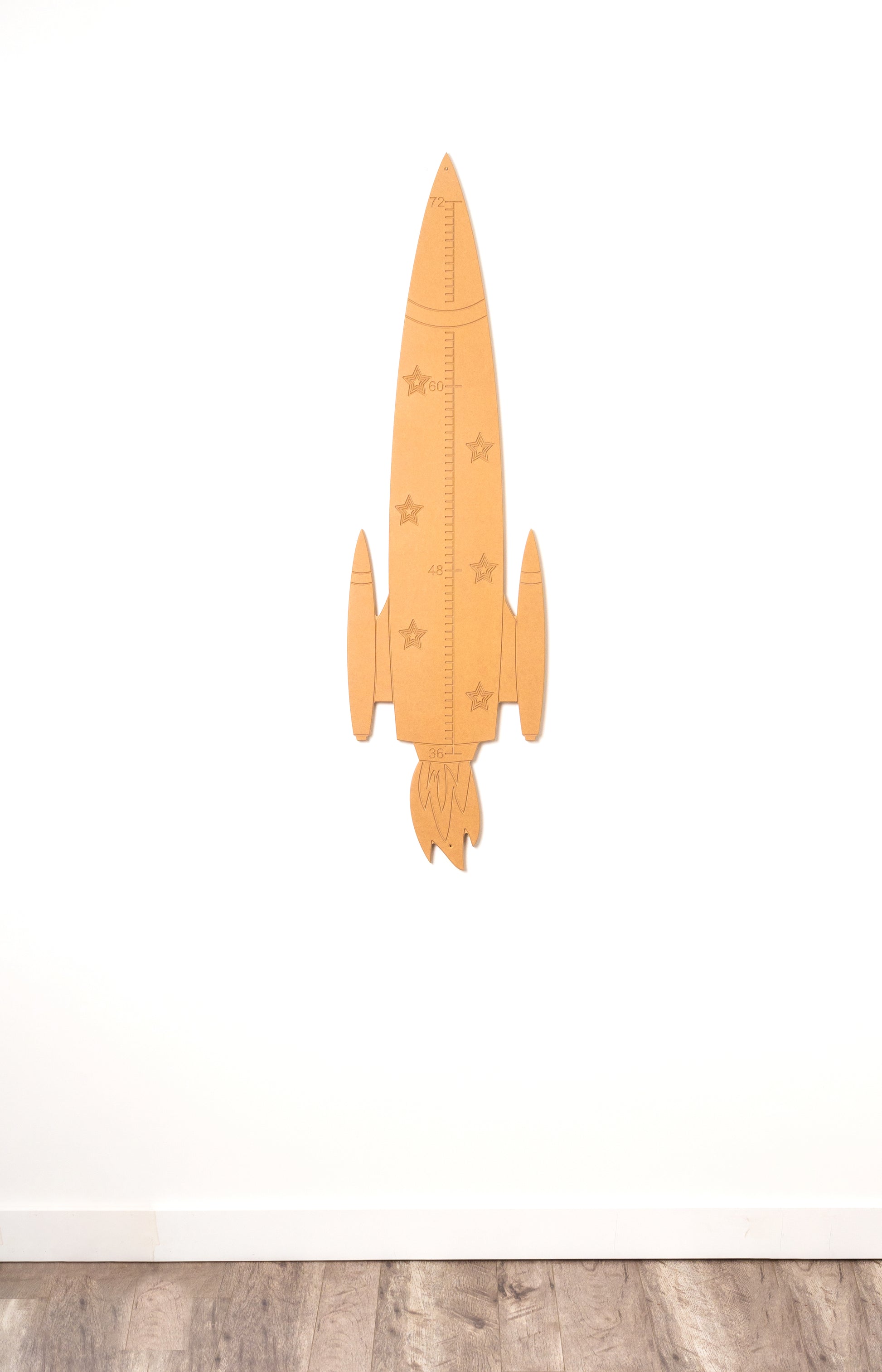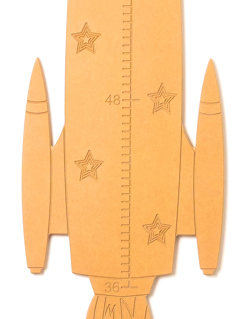 This Rocket Height Chart is perfect for any child/family with an interest in space, flying, or rockets specifically of course. The great thing about this height/growth chart is that they are mounted a few feet off the ground, and can be moved very easily (they are quite light) if you wanted it in a different space within your home, or if you ever move homes. It comes raw and is ready for paint. You get to choose how this Rocket looks!